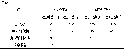 某企业下设A投资中心和B投资中心。两投资中心均有一投资方案可供选择,预计产生的影响如下表所示: