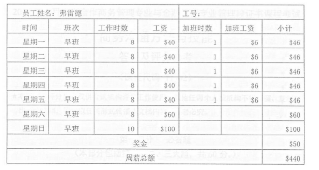 这样的轮班制度产生了复杂的支付制度。标准时薪是:早班5美元/小时,下午班6美元/小时,晚班7美元/小时,周一到周五,员工如果一天工作超出正常的八小时,超时部分在该员工标准时薪的基础上额外付1美元/小时。如果在周末上班,无论工作时间长短周六工资都是平时标准时薪的1.5倍,周日工资则为平时标准时薪的2倍。另外,工厂根据每周的产量另发奖金。每生产1000 个床垫,每个员工可得到5美元奖金。