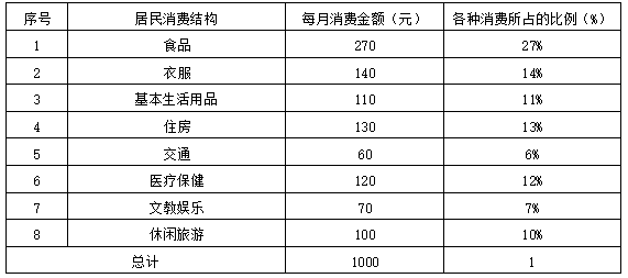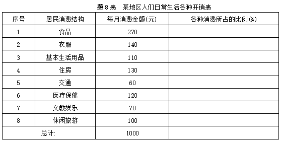 题8表是关于某地区人们日常生活各种消费的种类情况。