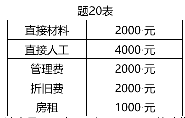 (1)固定成本=管理费+折旧费+房租=5000(元)变动成本=直接材料+直接人工=6000(元)单位变动成本=6000/1000=6(元)