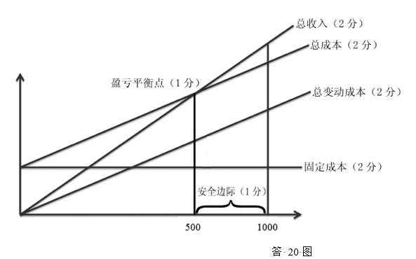 (4)画出该公司的盈亏平衡图,在图中体现出:(10分)