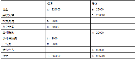(2)填制以下试算平衡表。(在字母位置填入正确数字,每项1分,共10分)