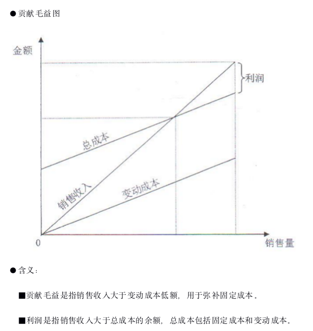 请画出贡献毛益图,并解释贡献毛益和利润的含义。