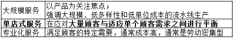 由题干中“大量顾客与单个顾客的平衡”对应表格可知,本题选A。D选项不属于服务过程的类型。