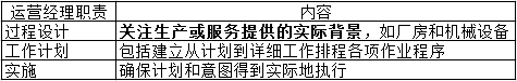 由题干中“生产或服务提供的实际背景”对应表格可知,本题选A。产品规划不属于运营经理的职责范围,D属于无关项。