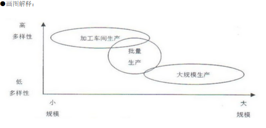 举例说明加工车间生产、批量生产和大规模生产这三种生产类型,并画图解释各生产类型在何种条件下被采用。