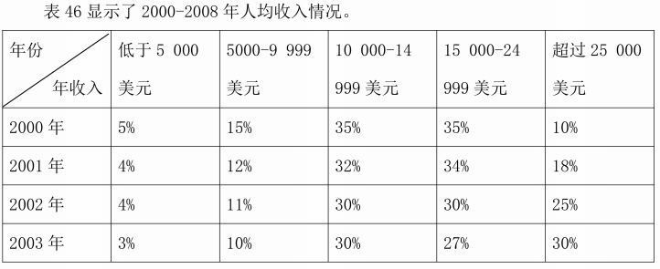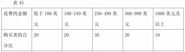表45显示了最近12个月内花费在购买新音响系统上的支出比例(%)