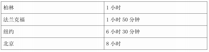 表16显示了从河边市到一些国际机场的飞行时间。