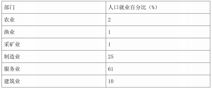 与1981年的人口普查数据相比,采矿业和制造业的就业人口比例大幅转移到服务业,建筑业就业人口比例小幅增加。2001年总就业率比1981年高。