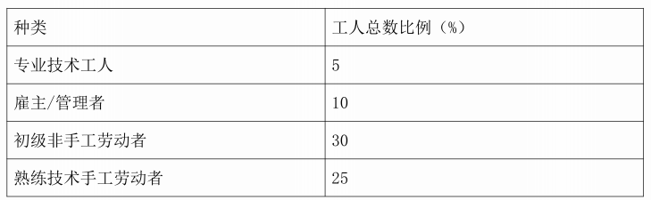 ①工人总数。表14显示了2009年河边市人口普查熟练技工和半熟练技工数量。