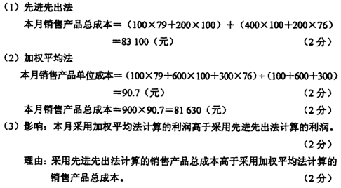 丁工业企业库存商品核算采用实际成本法。2011年4月份该企业生产销售新产品M,发生的有关经济业务如下: (1)5日,完工入库M产品100件,单位成本79元; (2)15日,完工入库M产品600件,单位成本100元; (3)16日,销售M产品300件; (4)20日,完工入库M产品300件,单位成本76元; (5)24日,销售M产品600件。 要求: (1)采用先进先出法计算销售M产品总成本; (2)采用加权平均法计算销售M产品单位成本和总成本; (3)比较分析上述两种计算方法对当月利润的影响并说明理由。