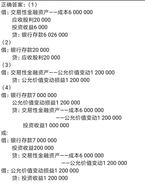(1)2019年7月10日,购入A公司股票2 000 000股作为交易性金融资产,支付价款6 020 000元,其中包含已宣告但尚未发放的现金股利20 000元,另支付手续费6 000元。