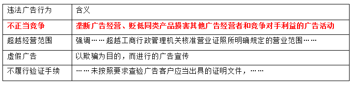垄断广告经营、贬低同类产品损害其他广告经营者和竞争对手利益的广告活动是( ) 作者:高老师 时间:2024-07-23 浏览 4 垄断广告经营、贬低同类产品损害其他广告经营者和竞争对手利益的广告活动是( )A、虚假广告B、不正当竞争C、超越经营范围D、不履行验证手续【正确答案】:B【题目解析】: 📱 扫码体验刷题小程序 扫一扫使用我们的微信小程序