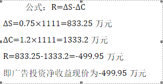 其广告投资净收益现价如何计算? 作者:高老师 时间:2024-07-23 浏览 1 某企业经营的产品,原计划利润额为125万元,产品销售量为1000台,单位产品售价0.75万元,固定成本为145万元,如果拿出30万元作为广告费用支出,要求保证125万元利润实现。请你依据相关知识,回答以下问题: 其广告投资净收益现价如何计算?【正确答案】:【题目解析】: 📱 扫码体验刷题小程序 扫一扫使用我们的微信小程序