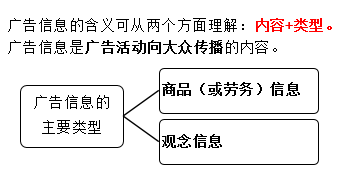 名词解释:广告信息 作者:高老师 时间:2024-07-23 浏览 2 名词解释:广告信息【正确答案】:广告信息是广告活动向大众传播的内容,主要包括商品(或劳务)信息和观念信息两大类。【题目解析】: 📱 扫码体验刷题小程序 扫一扫使用我们的微信小程序
