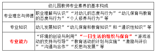 根据《幼儿园教师专业标准(试行)》,“一日生活的组织与保育”属于( ) 作者:高老师 时间:2024-07-23 浏览 2 根据《幼儿园教师专业标准(试行)》,“一日生活的组织与保育”属于( )A、专业理念与师德B、专业知识C、专业技能D、专业能力【正确答案】:D【题目解析】:C项未提及,为干扰项,排除;正确答案为D。 📱 扫码体验刷题小程序 扫一扫使用我们的微信小程序