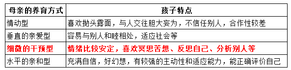 ( )母亲,培养出来的孩子,情绪比较安定,喜欢冥思苦想、反思自己、分析别人等。 作者:高老师 时间:2024-07-23 浏览 1 ( )母亲,培养出来的孩子,情绪比较安定,喜欢冥思苦想、反思自己、分析别人等。A、细微的干预型B、垂直的亲爱型C、水平的亲和型D、情动型【正确答案】:A【题目解析】: 📱 扫码体验刷题小程序 扫一扫使用我们的微信小程序