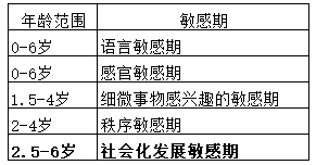 蒙台梭利在《童年的秘密》中指出,学前期存在秩序敏感期和社会化发展敏感期。社会化发展敏感期处于儿童的( )岁 作者:高老师 时间:2024-07-23 浏览 2 蒙台梭利在《童年的秘密》中指出,学前期存在秩序敏感期和社会化发展敏感期。社会化发展敏感期处于儿童的( )岁A、0-3B、1.5-4C、2-4D、2.5-6【正确答案】:D【题目解析】: 📱 扫码体验刷题小程序 扫一扫使用我们的微信小程序