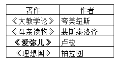 教育家卢梭的代表作是( ) 作者:高老师 时间:2024-07-23 浏览 0 教育家卢梭的代表作是( )A、《大教学论》B、《爱弥儿》C、《母亲读物》D、《理想国》【正确答案】:B【题目解析】: 📱 扫码体验刷题小程序 扫一扫使用我们的微信小程序