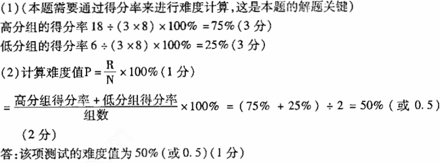 已知某项测试的满分分数是3分,参加测试的幼儿为30人,其中高分组8人的实得总分为18分,低分组也为8人,该组的实得总分为6分,求 作者:高老师 时间:2024-07-24 浏览 0 已知某项测试的满分分数是3分,参加测试的幼儿为30人,其中高分组8人的实得总分为18分,低分组也为8人,该组的实得总分为6分,求该项测试的难度。【正确答案】: 📱 扫码体验刷题小程序 扫一扫使用我们的微信小程序