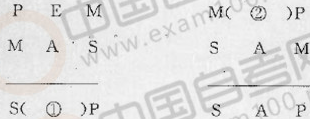 请写出下列各式中①、②处缺少的符号,使之成为有效的三段论式。
