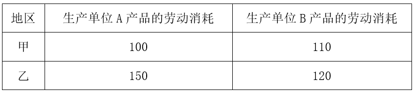 已知甲、乙两个地区生产A、B两种农产品劳动消耗如下表(单位:元)。