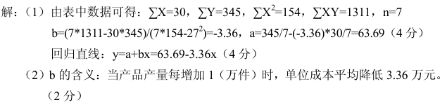 (2)当产品产量每增加1万件时,单位成本的变化情况。(结果保留两位小数)