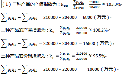 (1)计算三种产品的产值指数、产量指数和价格指数;
