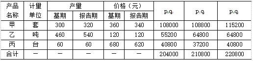 某工业企业甲、乙、丙三种产品产量及价格资料如下表: