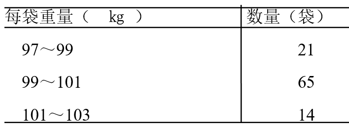 某水泥厂生产100㎏装水泥,每分钟产量10袋,连续生产一天的产量为1440袋,现每隔144分钟抽取10袋组成样本,检测其包装重量,结果如下: