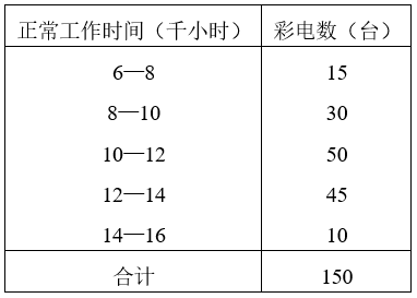 某彩电生产企业,按不重复抽样方法从1000台彩电中抽选150台进行质量检查。所得结果如下表所示: