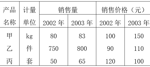 即:由于销售量变动,使销售额增长8.1%,增加6600元,由于价格变动,使销售额增长21.40%,增加18850元。两者合计,使销售额增长31.23%,增加25450元。(2分)