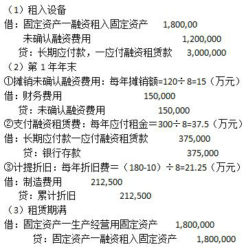 东升公司2002年1月1日融资租入一台设备作生产用,租赁设备的原价为200万元,按租赁协议确定最低租赁付款额为300万元,租赁价 作者:高老师 时间:2024-07-25 浏览 12 东升公司2002年1月1日融资租入一台设备作生产用,租赁设备的原价为200万元,按租赁协议确定最低租赁付款额为300万元,租赁价款分8年于每年年末偿还;最低租赁付款额的现值为180万元,该设备的折旧年限为8年,采用直线法计提折旧,其到期净残值为10万元。租赁期满后,该设备转为东升公司所有。(采用直线法摊销未确认融资费用)要求:根据以上资料,编制东升公司租赁该设备第一年和租赁期满时的有关会计分录。【正确答案】: 📱 扫码体验刷题小程序 扫一扫使用我们的微信小程序
