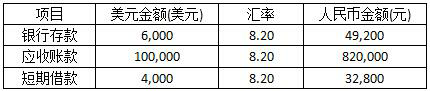 (4)8月28日,收到上月应收款项80,000美元,市场汇率1:8.25。