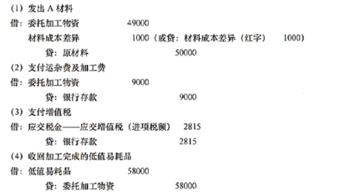 A公司委托B公司加工一批低值易耗品。发出A材料计划成本50000元,材料成本差异节约1000元,支付运杂费及加工费9000元,支 作者:高老师 时间:2024-07-25 浏览 0 A公司委托B公司加工一批低值易耗品。发出A材料计划成本50000元,材料成本差异节约1000元,支付运杂费及加工费9000元,支付增值税2815元。要求:编制下列业务的会计分录:(1)发出A材料;(2)支付运杂费及加工费;(3)支付增值税;(4)收回加工完成的低值易耗品。【正确答案】: 📱 扫码体验刷题小程序 扫一扫使用我们的微信小程序