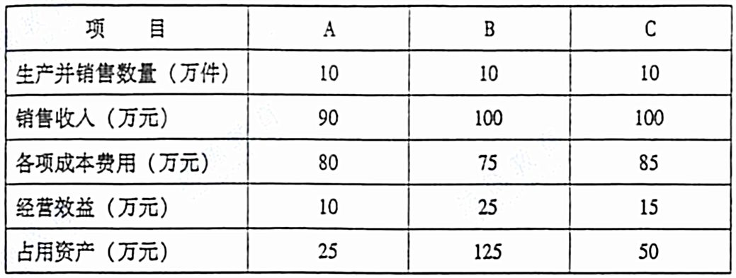 大华公司下设三个责任中心A、B、C生产并销售相同产品,以下是2007年的有关数据。如表所示:
