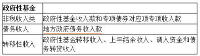 政府性基金预算收入包括非税收入,债务收入和转移性收入三类。具体如下: