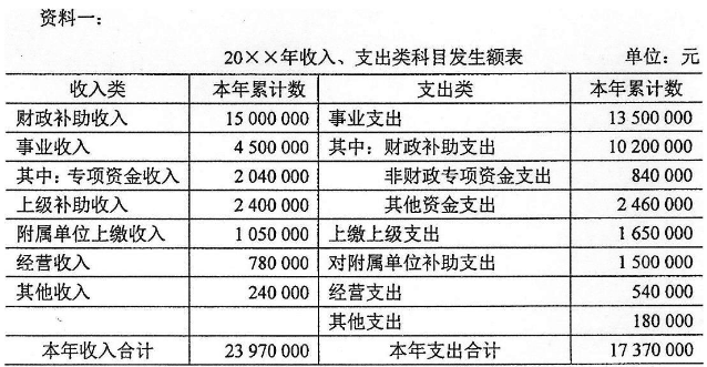 资料二: ①根据对财政补助各明细项目执行情况进行分析,“财政补助结转”均不符合转入 “财政补助结余”的条件; ②该单位事业活动和经营活动免缴各种税费; ③该单位按事业结余及经营结余的30%计提职工福利基金后,余额转入事业基金。 要求: (1)根据上述资料,编制年终转账分录; (2)根据上述资料,编制年终结转结余和结余分配分录。