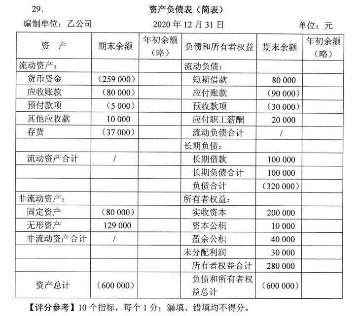 资料: 2020年12月31日乙公司总账及明细账资料如下: 要求:根据上述资料,完成乙公司下列资产负债表中括号内项目期末余额的填 作者:高老师 时间:2024-07-26 浏览 0 资料: 2020年12月31日乙公司总账及明细账资料如下: 要求:根据上述资料,完成乙公司下列资产负债表中括号内项目期末余额的填列。【正确答案】: 📱 扫码体验刷题小程序 扫一扫使用我们的微信小程序
