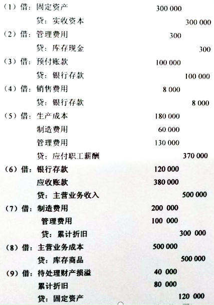 (9)因火灾烧毁设备一台,原价120000元,累计折旧80000元,相关损失待处理。