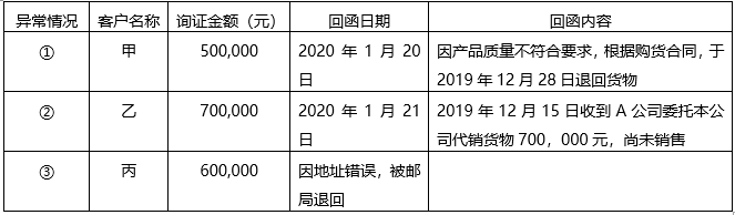 审计人员将与函证结果相关的重要异常情况汇总如下: