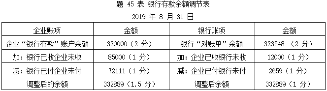 (1)根据所给资料,编制银行存款余额调节表如题 45 表: