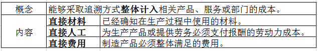直接成本,是指能够采取追溯方式整体计入相关产品、服务或部门的成本。