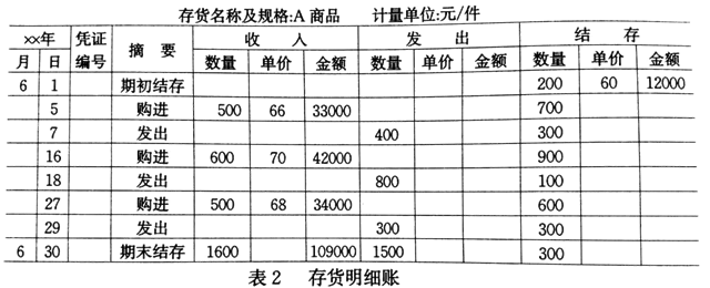 ABC 股份有限公司2017年6月份A商品的购进、发出和结存资料,见表1。ABC 公司采用先进先出法计算的A商品本月发出和月末结存成本如下: