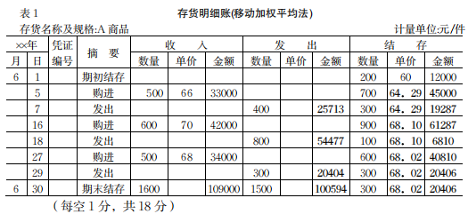 (1)用移动加权平均法对上述A商品进行本期耗用成本的计算并期末进行计价。(10分)