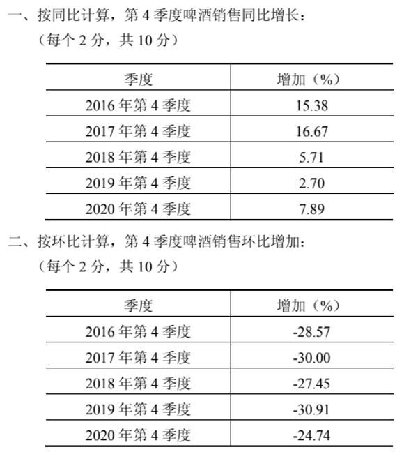 (3)从2016年起,计算第4季度啤酒销售环比增长百分比。(10分)