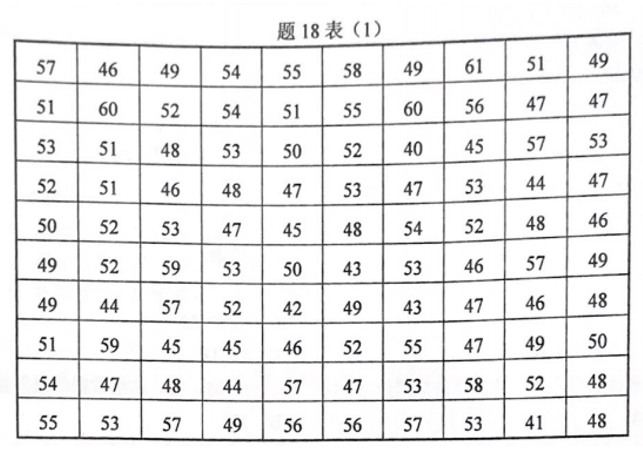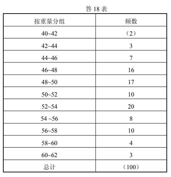 (2)请按照上限 不 在内原则填写题18表(2)的空格。(每空1分,共10分)
