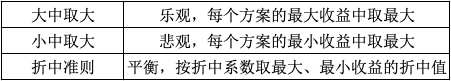 下列关于非概率型决策的准则的说法错误的是( ) 作者:高老师 时间:2024-07-26 浏览 0 下列关于非概率型决策的准则的说法错误的是( )A、大中取大准则也称为乐观准则B、小中取大准则也称为悲观准则C、大中取大和小中取大准则都是从收益函数出发给出的决策准则D、折中准则与大中取大准则一样都是一种极端准则【正确答案】:D【题目解析】:可见,折中准则是既不过分悲观也不过分乐观的准则,并不极端,故D错误。 📱 扫码体验刷题小程序 扫一扫使用我们的微信小程序