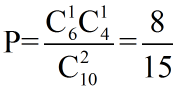 某工厂一班组共有男工6人、女工4人,从中任选2名代表,则其中恰有1名女工的概率为( ) 作者:高老师 时间:2024-07-26 浏览 1 某工厂一班组共有男工6人、女工4人,从中任选2名代表,则其中恰有1名女工的概率为( )A、1/3B、2/3C、8/15D、7/15【正确答案】:C【题目解析】:“恰有1名女工”意思是:一名男工,一名女工。即6个男工中选1个,4个女工中选一个。故本题选C 📱 扫码体验刷题小程序 扫一扫使用我们的微信小程序