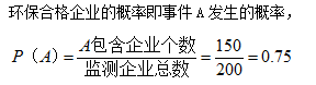 求该企业被评为环保合格企业的概率。 作者:高老师 时间:2024-07-26 浏览 0 环保部门对某行业重点监测的200家企业于2009年和2010年连续两年进行检查,连续两年都合格才能被评为环保合格企业(记为事件A),连续两年都不合格(记为事件B)就要限期整改,检查结果如下:连续两年都合格的企业共150家,两年中恰有一年不合格(记为事件C)的企业40家,连续两年都不合格的企业10家。 任选一企业,试回答下列问题:求该企业被评为环保合格企业的概率。【正确答案】:【题目解析】:古典概率的计算公式:本题,连续两年都合格才能被评为环保合格企业,有150家,参与监测的企业共200家,故概率为150÷200=0.75。 📱 扫码体验刷题小程序 扫一扫使用我们的微信小程序
